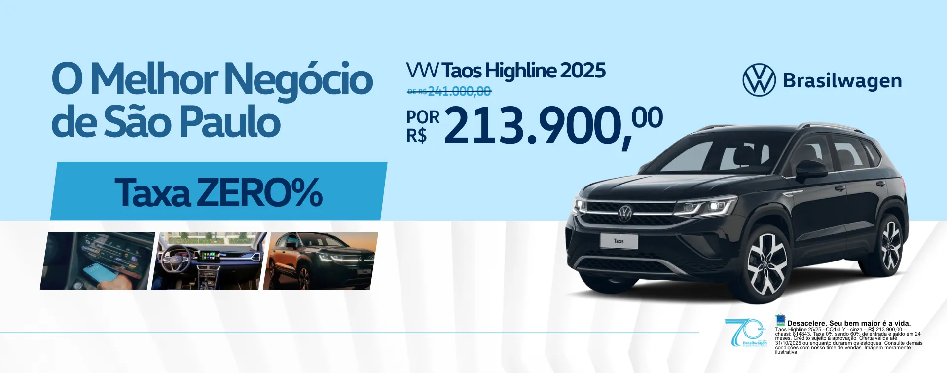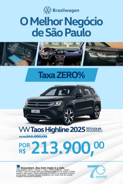 O Taos é o carro certo para quem prioriza estilo e segurança, mas não abre mão da eficiência. O modelo está disponível nas versões Highline e Comfortline, cada uma com uma série de diferenciais.